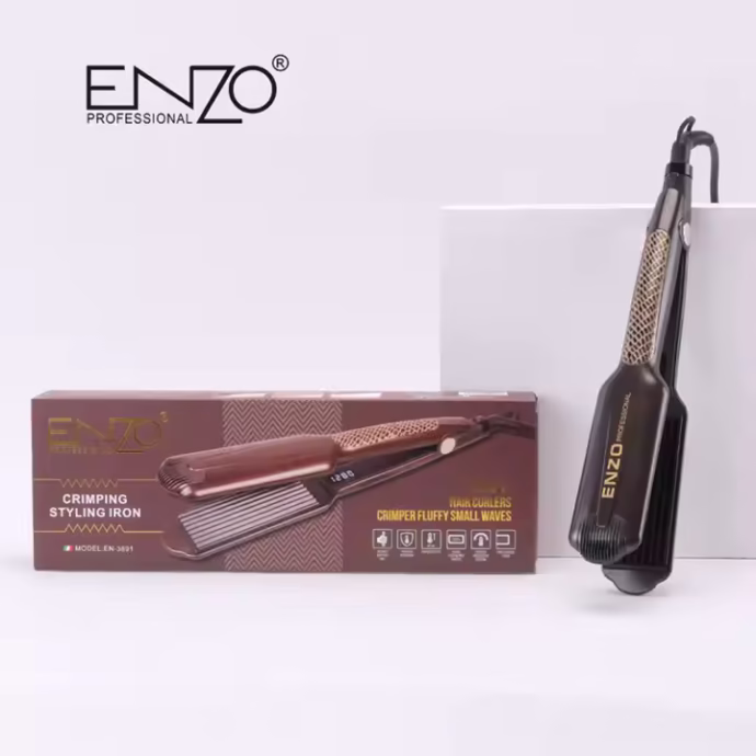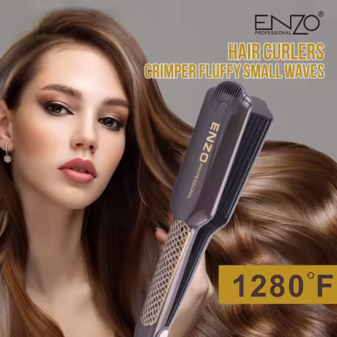 احصلي على تموجات شعر جريئة ومظهر ممتلئ بكل سهولة مع جهاز ENZO Crimping Styling Iron.